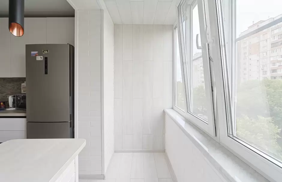 Выведено и разведено электричество. Установлена столешница. Сроки: 1 день-демонта/монтаж окон, 5 дней - обшивка балкона.