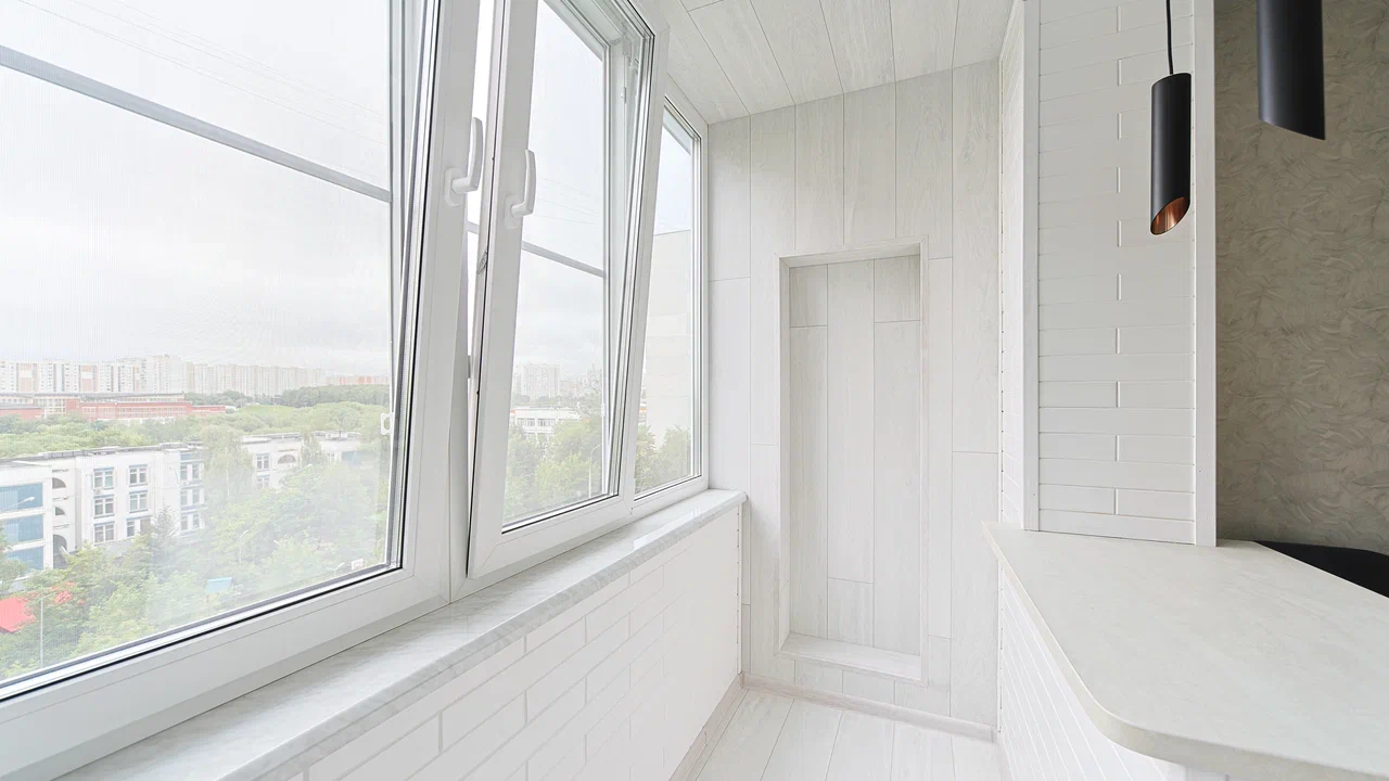 Надежное остекление: Рехау Gracio 70 профиль, фурнитура ROTO.                                                                                 Дизайнерское решение:организация дополнительной ниши для хранения.