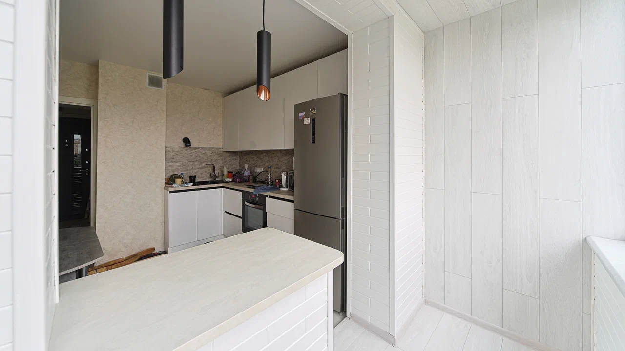 Увеличение рабочего пространства засчет объединения балкона с кухней.