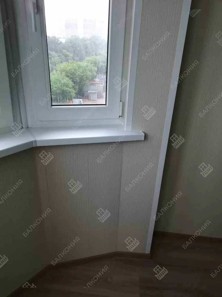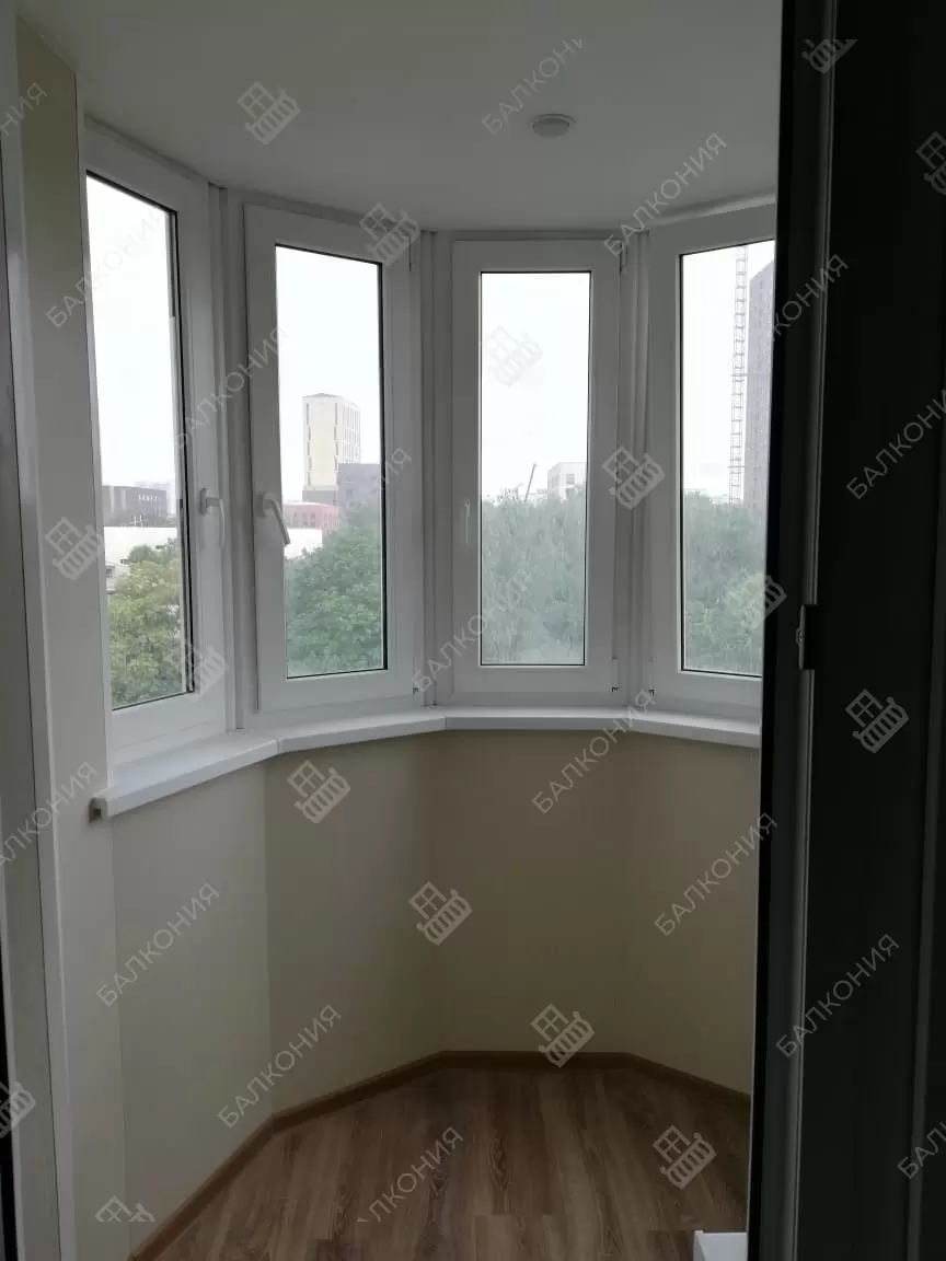 Реализованы работы по отделке балкона под ключ с утеплением в многоквартирном доме. Сделано остекление эркерной лоджии и установлен балконный блок из профиля Rehau Grazio 70 с энергосбережением, что также дало дополнительную шумоизоляцию. Сделано утепление. Отделка стен и потолка выполнена панелями ПВХ, полы - ламинат. Выведено и разведено по балкону электричество. Материал предоставлялся компанией «Балкония» согласно пожеланиям заказчика.