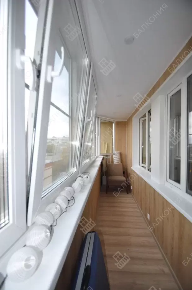 В данном объекте было выполнено решение по отделке лоджии. Установлены новые окна, что дало больше тепла в квартире. Балкон остеклен окнами с мультифункциональным стеклопакетом. Выведено и разведено электричество.