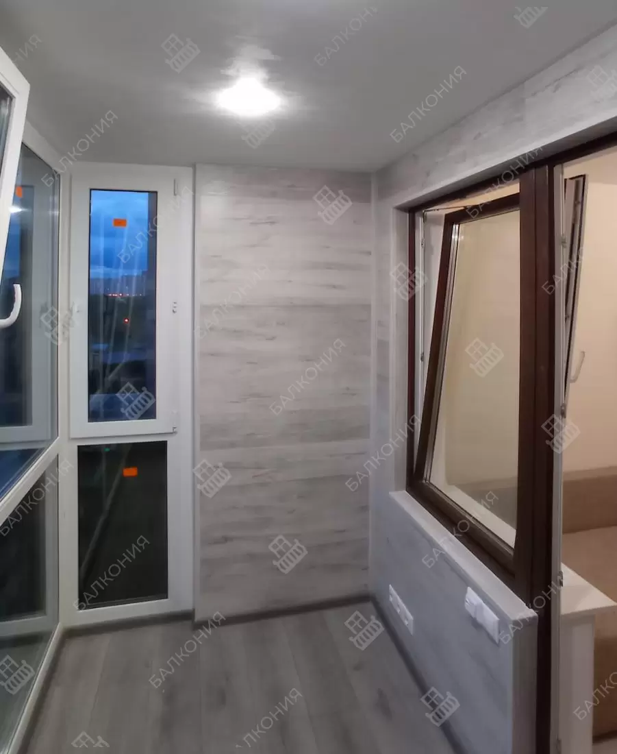 В данном объекте было выполнено решение по отделке балкона. На место балконного блока установлены новые окна, что дало больше тепла в квартире. Балкон остеклен панорамными окнами с мультифункциональным стеклопакетом. Стены обшиты ПВХ. Выведено и разведено электричество.