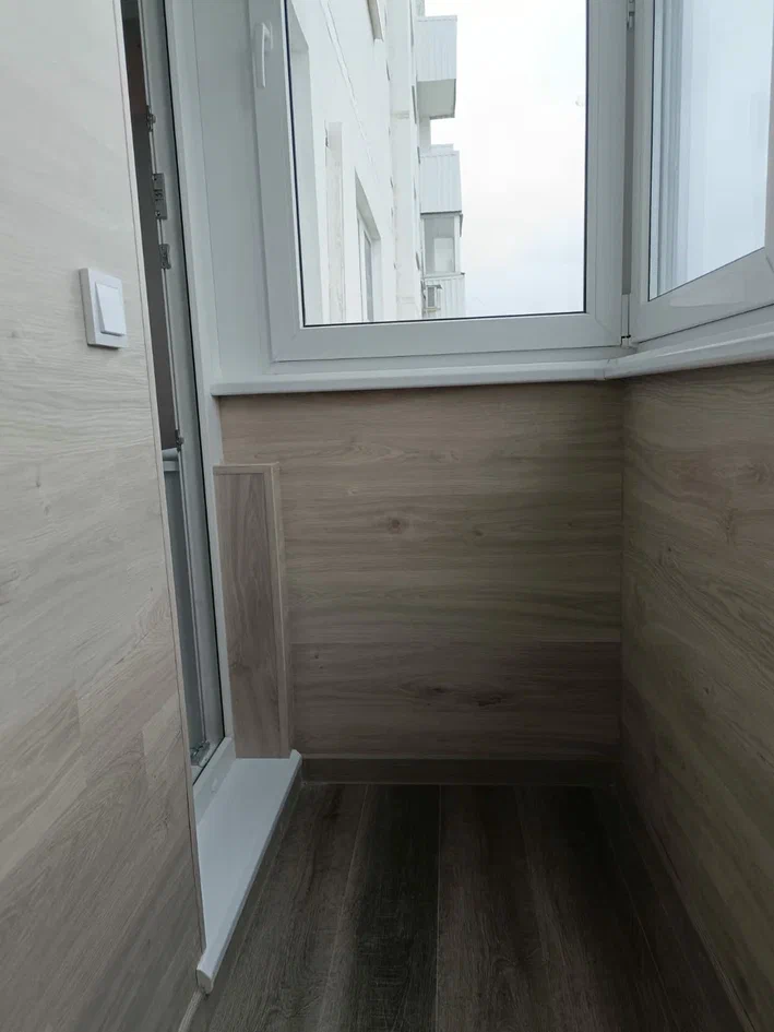 Выполнен капитальный ремонт Г-образной лоджии в жилом комплексе по адресу: Барвихинская улица, дом 8 корпус 2, серия дома П-3. Основные работы: Отделка стен: стены облицованы качественным кварцвинилом, устойчивым к повреждениям и влаге.