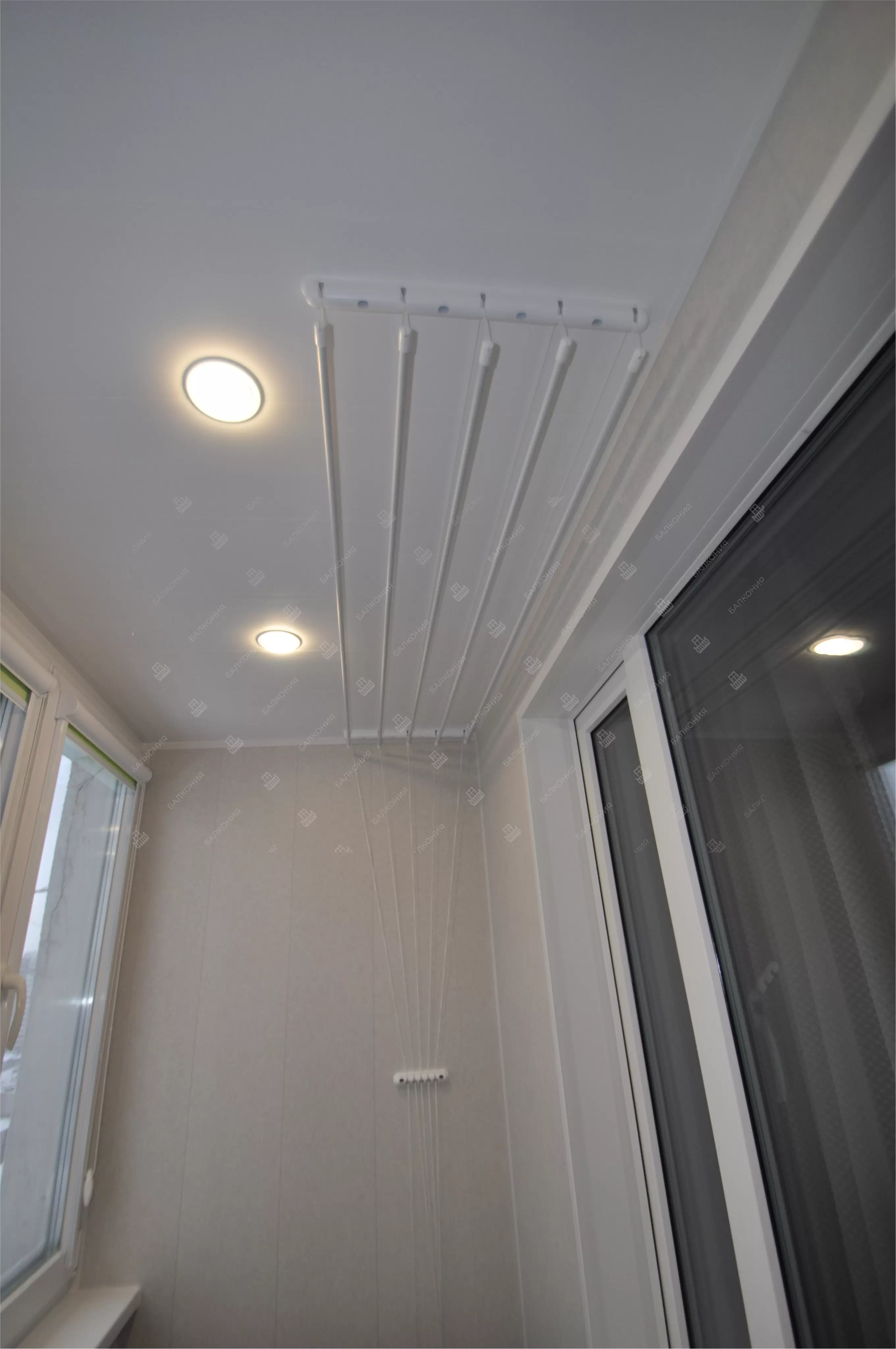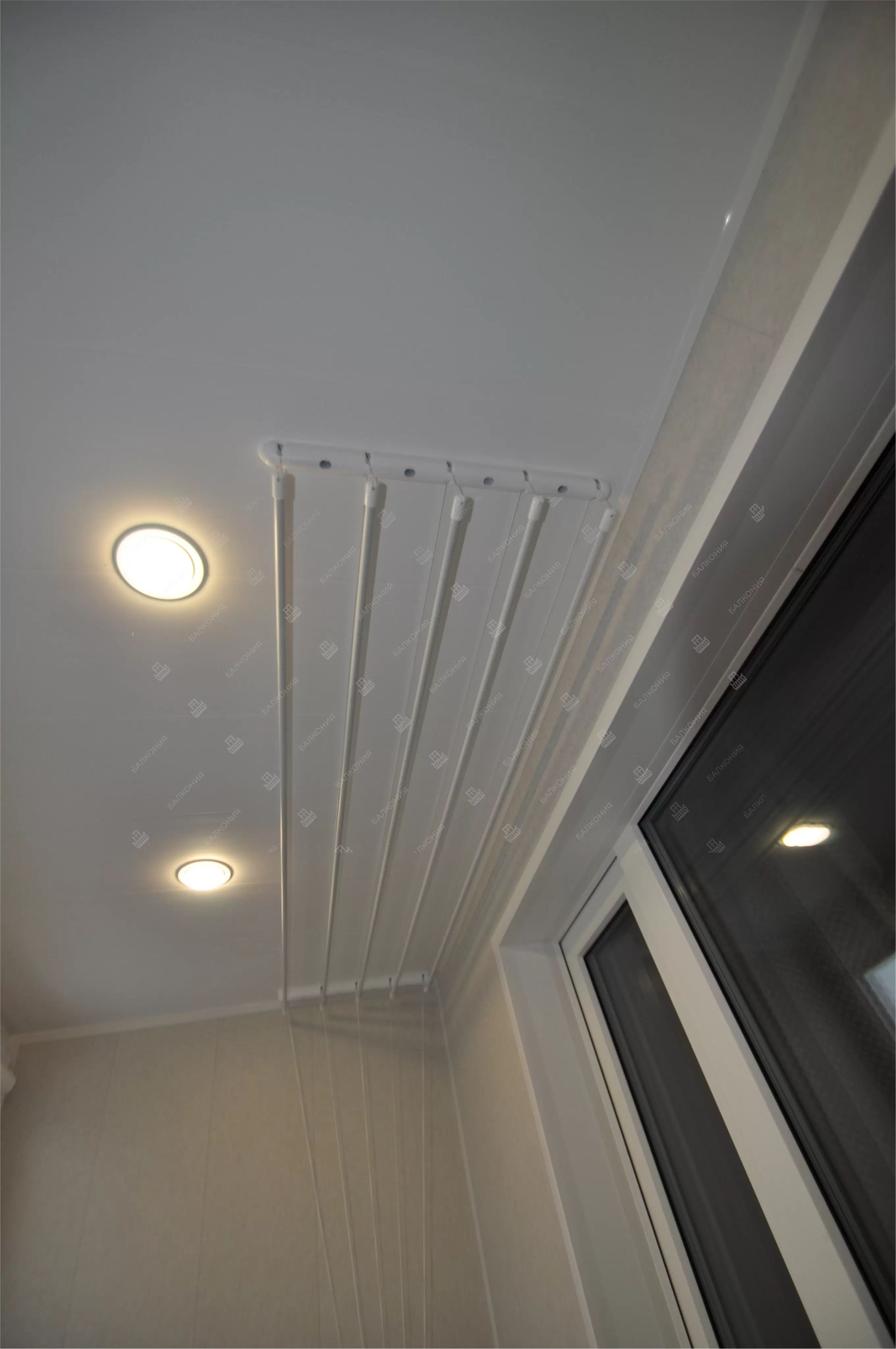 В данном объекте было выполнено решение по отделке балкона для технических нужд и хранения имущества. На место старых, деревянных рам, установленны новые ПВХ окна. Отделка стен и потолка выполнена панелями ПВХ, пол сделан влагостойкой фанерой в основе и ламинатом 33 класса. Выведено электричество. Подключено 3 светильника и розетки. Установлена потолочная сушилка.